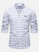Cowboy Embroidery Cotton Plaid Button Up Shirt