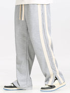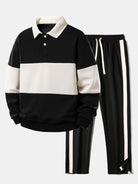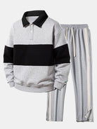Relax Fit Color Block Polo Collar Sweatshirt & Slit Hem Stripe Pants