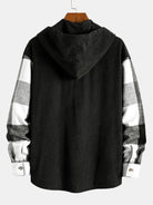 Relax Fit Flannel Plaid Corduroy Patchwork Hooded Shirt & Straight Leg Corduroy Pants