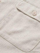 This short-sleeve shirt is made from linen and cotton with a natural texture, making it perfect for summer. The simple beige tone exudes understated elegance, suitable for casual daily wear or vacation outfits. The revere collar adds a touch of vintage charm, while the two front pockets with button details combine functionality with style. Designed with a full button-down front, it allows for easy wear and versatile styling. Whether paired with casual trousers or jeans, this shirt effortlessly showcases a laid-back yet fashionable vibe.