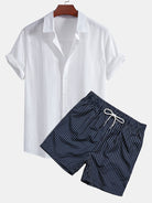 Linen Look Cotton Button Up Shirt & Striped Print Swim Shorts