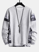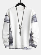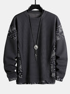 Paisley Print Panel Waffle Sweatshirt