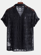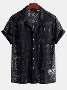 Short Sleeve Geometry Textured Cuban Shirt