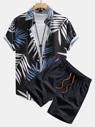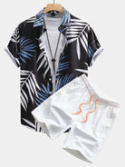 Tropical Leaves Print Button Up Shirt & Swim Shorts