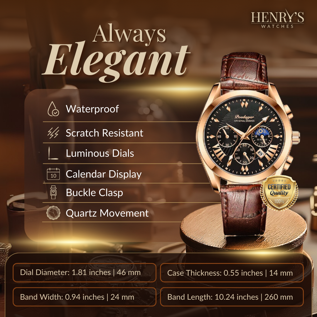Made with quartz movement for accuracy and durability, this watch is a real eye-catcher. Whether you're attending a business meeting or having a casual outing, the luxurious finish will ensure you impress. The perfect accessory for the modern man.