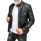 Men's Padded Black Cafe Racer Leather Jacket – where classic biker style meets modern sophistication. Made from premium lambskin leather with a soft viscose lining for comfort and durability. Features include padded shoulders, zipper closure, zip cuffs, and functional chest and waist pockets for style and practicality. Perfect for both rides and nights out, this jacket is a bold wardrobe essential. Make a statement—own the road.