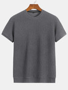 Short Sleeve Waffle Ribbed Hem T-Shirt