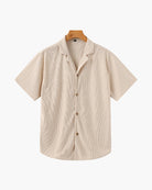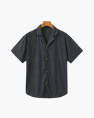 - Relaxed-fit button-up shirt with an open collar for casual elegance